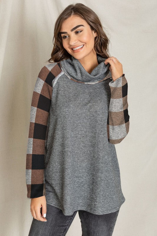 SaleTerry Cowl Neck Checkered Sleeve Tunic$58.99$58.99$65.99Unit price / per -