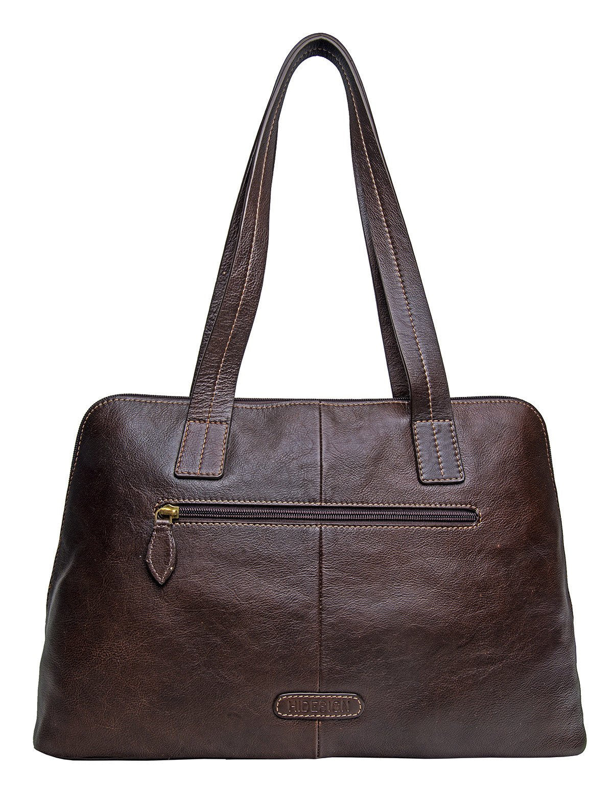 A large classic and elegant women's tote bag ideal for work or daily use. The bag is made of natural vegetable tanned leather with a contrast stitch detail on the straps and a subtle Hidesign metallic bull's head logo. The construction of the bag allows it to expand as it opens giving it plenty of space for a small laptop, tablet, papers and other office essentials.