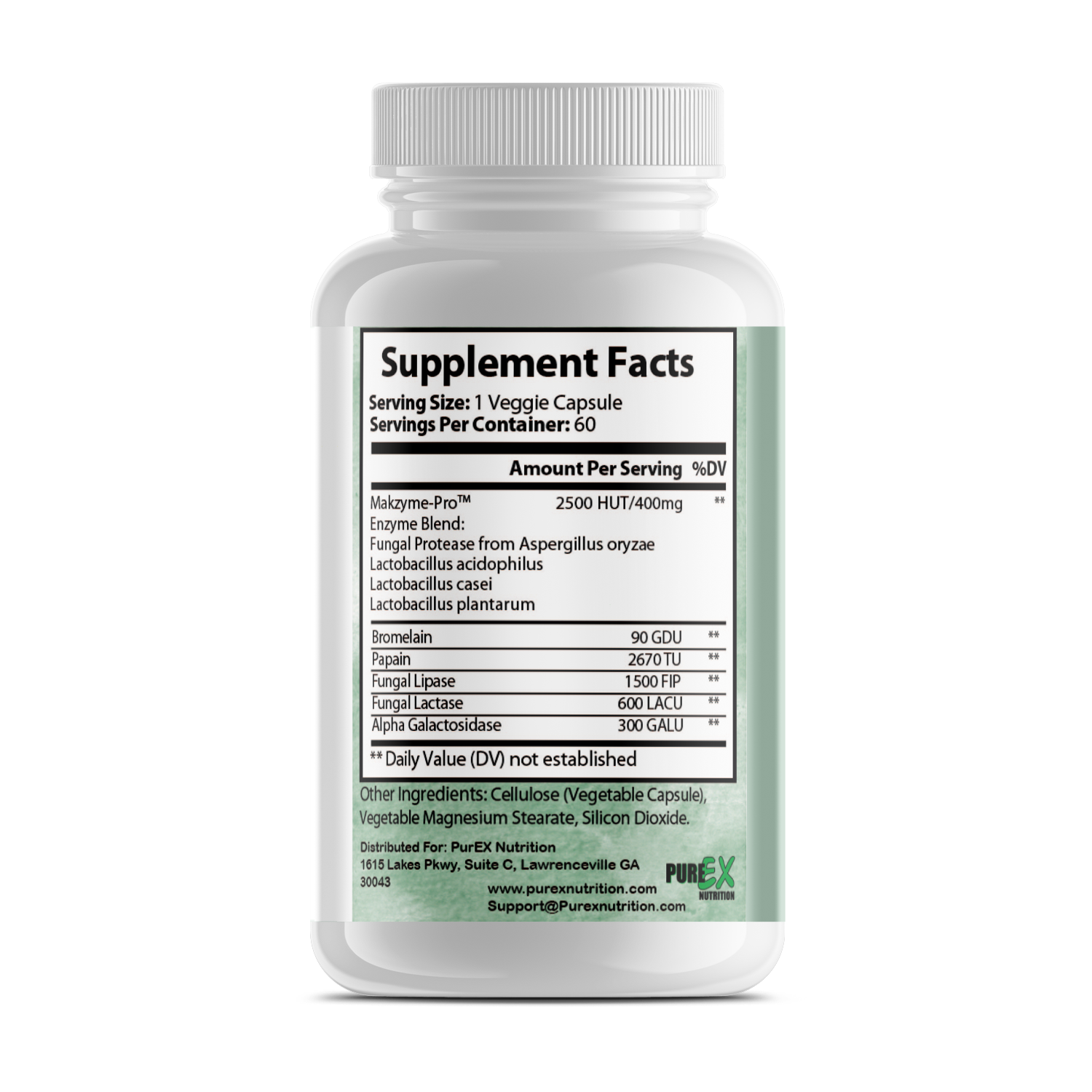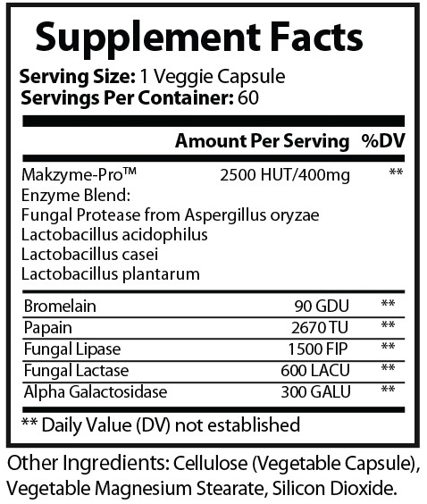 Pure Digestion enzymes come complete for complete digestion support. We put lactase, lipase, papain for the protease, bromelain another proteolytic(digest protein) enzyme and the super powerful Makzyme Pro â„¢ Enzyme Blend.