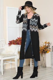 Open front cardigan with side pockets and Side Slits contrasted with print