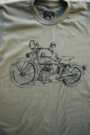 This is a drawing of a 1929 Indian Motorcycle which was known as the 101 Scout model. Produced from 1928-1931 it has been called the best Indian motorcycle ever made. Noted for its handling it was popular among racers, hillclimbers and trick riders. It was expensive to produce and had a small profit margin, so the economic hardship of the Great Depression forced Indian to discontinue the 101 Scout.