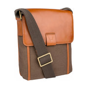 Aiden Genuine Leather & Canvas Mini Crossbody Messenger/Travel Bag / 10.5" iPad
