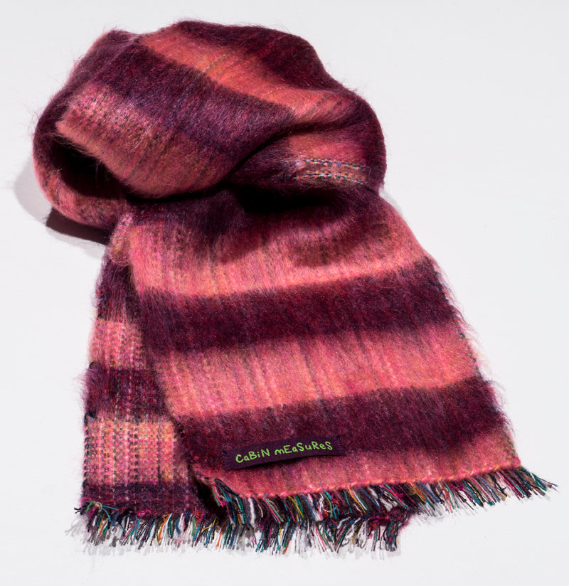 100% handwoven alpaca in even stripes. Approximately 6" x 45". Dry clean only.
