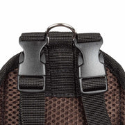 Features an Above Stainless Steel Harness Ring with Dual Adjustable Straps along the back-side
