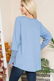 Oversized Tunic Top with Textured Contrast Rib Thumbhole